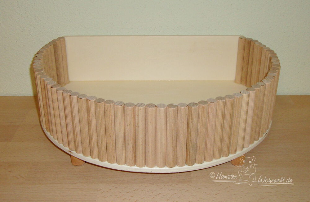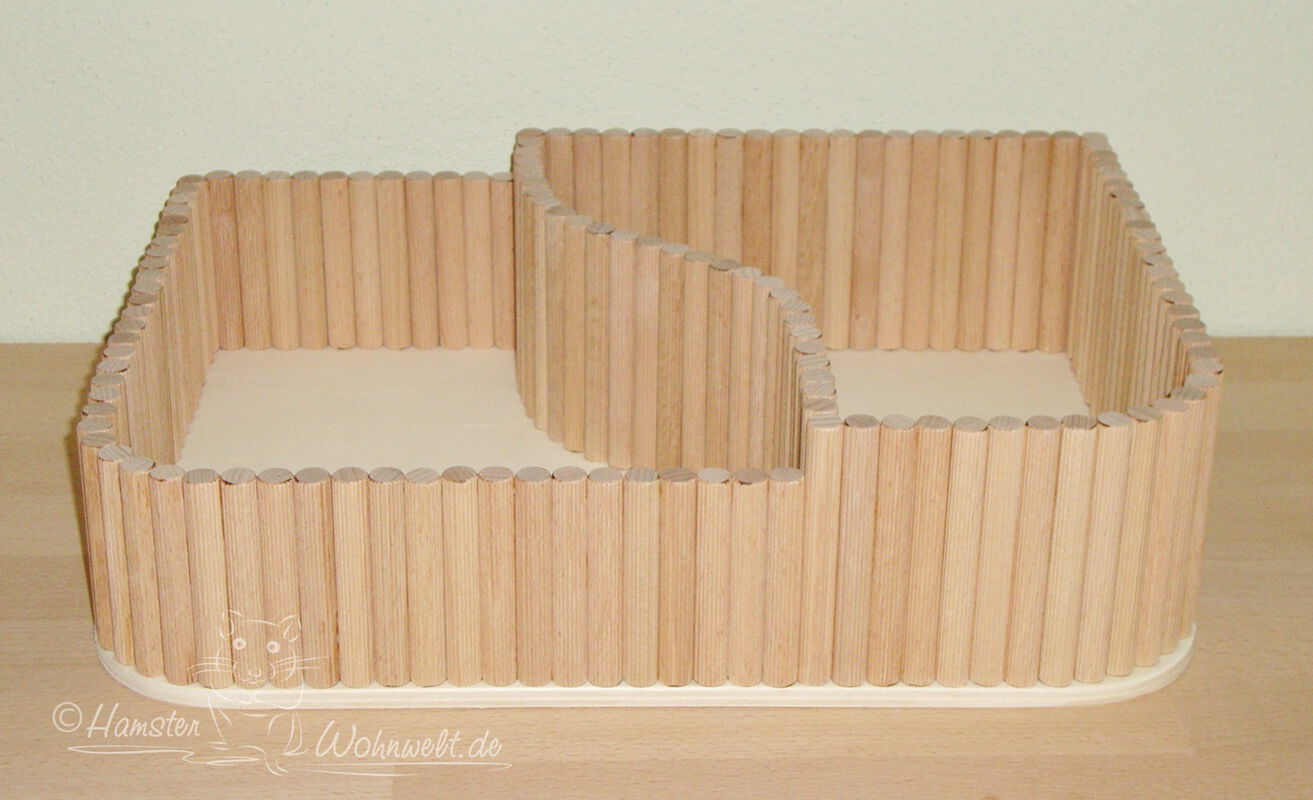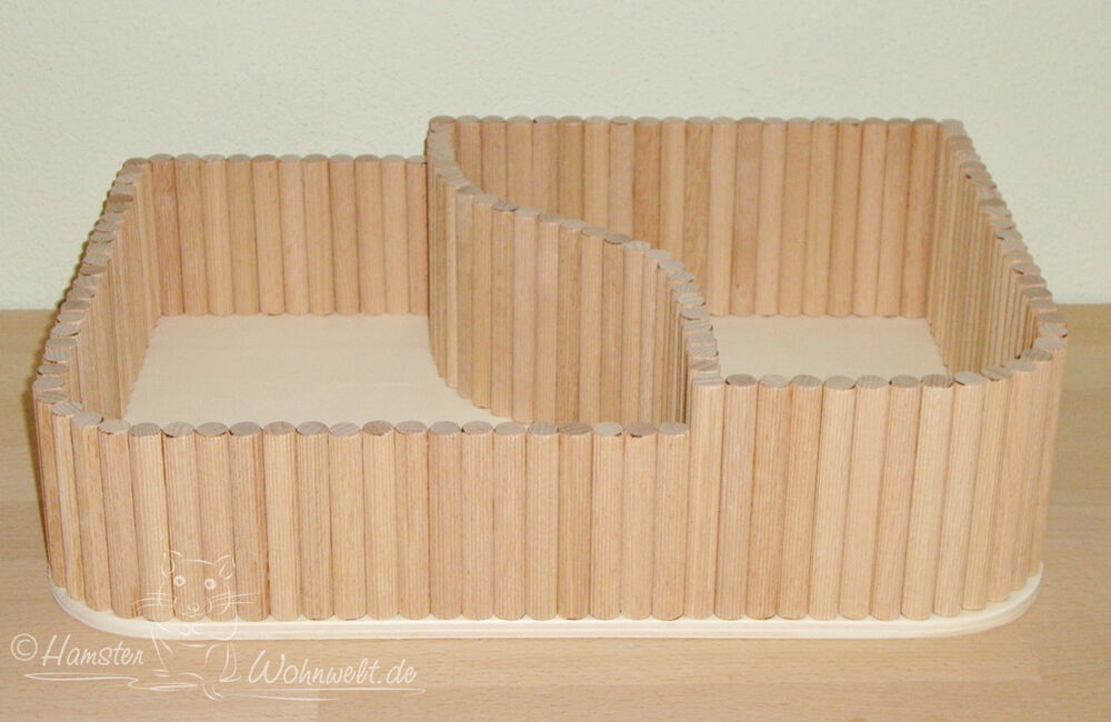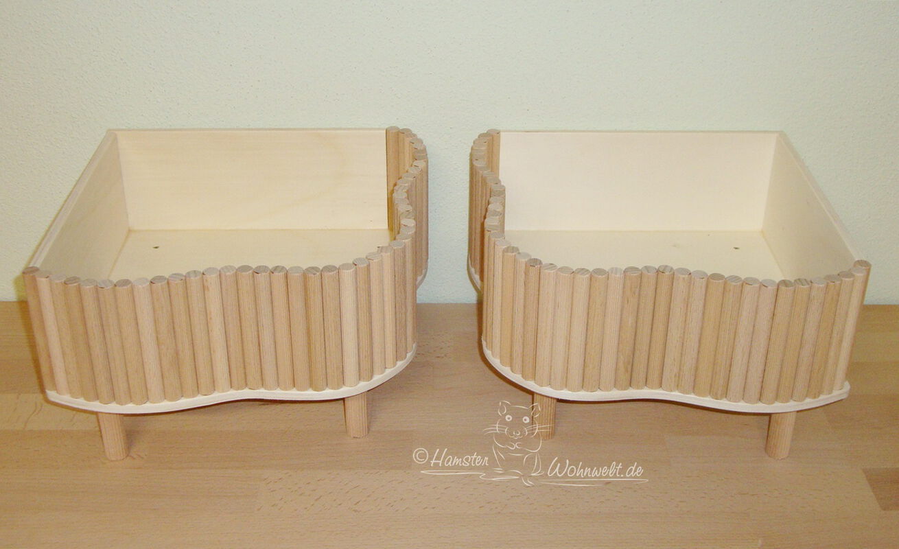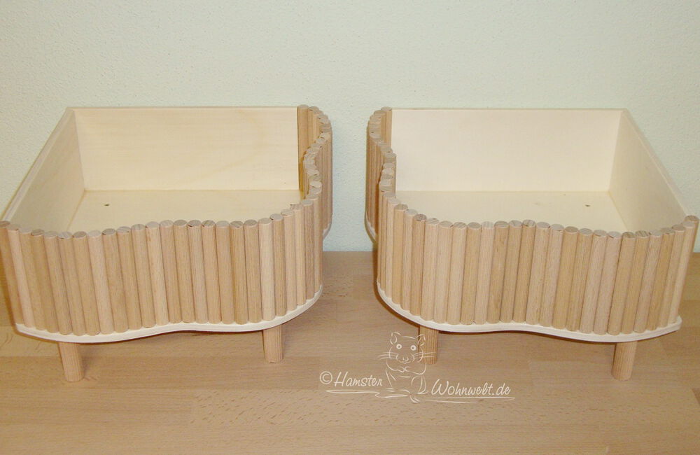 Meine Buddelboxen aus der Hamster-Wohnwelt-Werkstatt sind individuell auf Ihre Gehegemaße abgestimmt. Ich fertige Boxen entweder vier- oder rechteckig aus dickem Pappelholz, oder geschwungen aus geriffelten Buche-Riffelstäben an. Letzteres erlaubt gewisse "Form-Freiheiten" - so kann ich ovale, runde, halbrunde, eckige, dreieckige (usw.) Boxen anbieten.