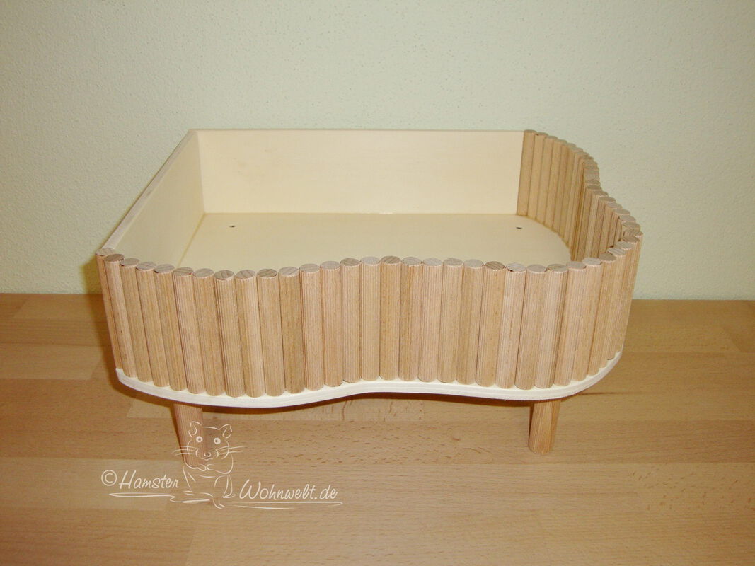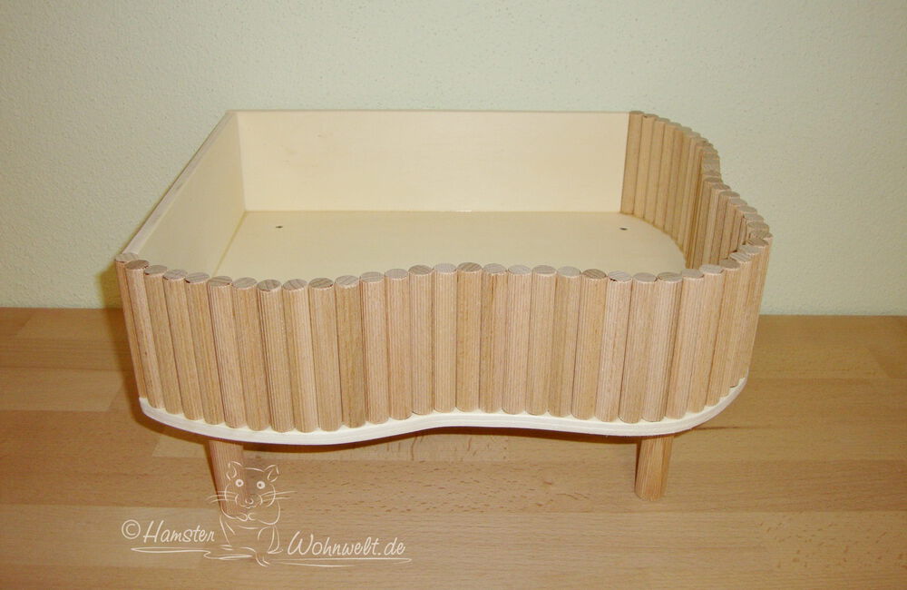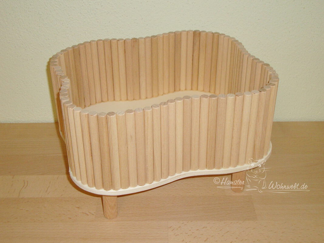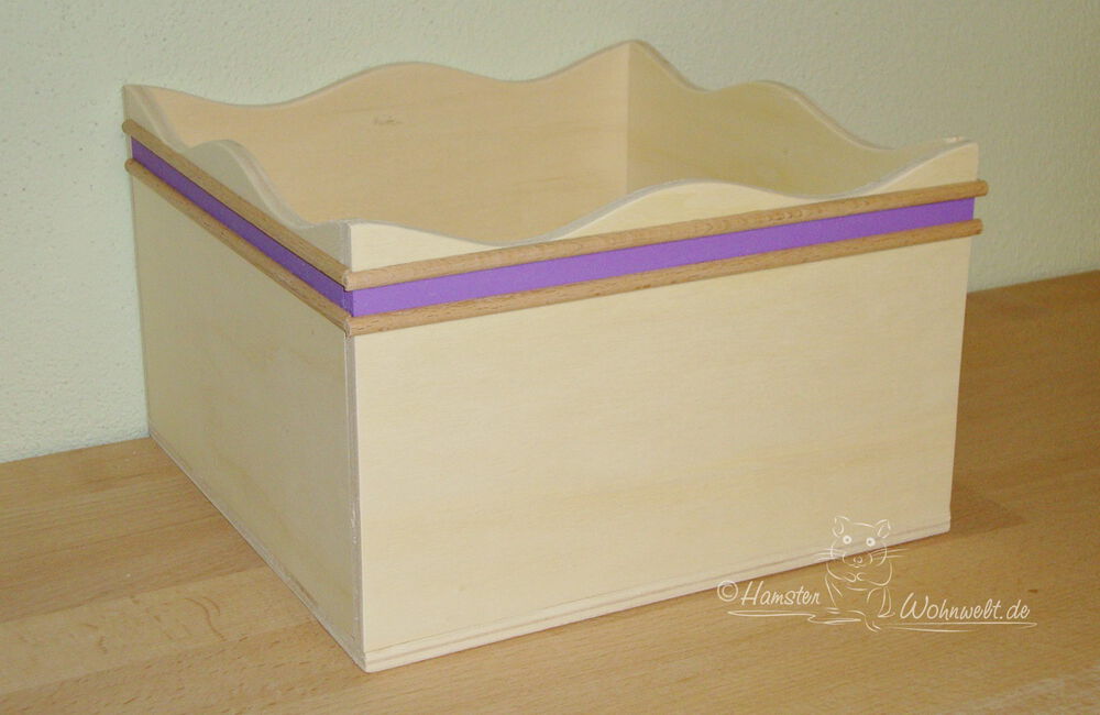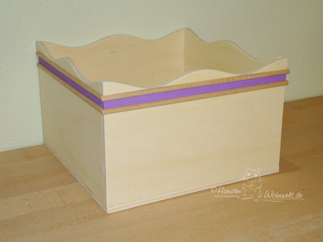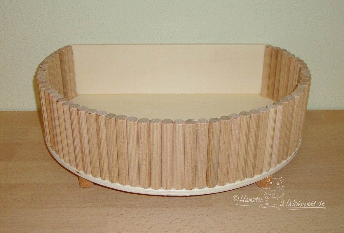 Meine Buddelboxen aus der Hamster-Wohnwelt-Werkstatt sind individuell auf Ihre Gehegemaße abgestimmt. Ich fertige Boxen entweder vier- oder rechteckig aus dickem Pappelholz, oder geschwungen aus geriffelten Buche-Riffelstäben an. Letzteres erlaubt gewisse "Form-Freiheiten" - so kann ich ovale, runde, halbrunde, eckige, dreieckige (usw.) Boxen anbieten.
