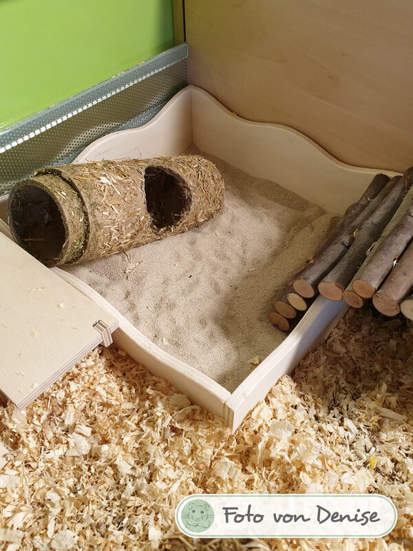 Eine Buddelbox sollte in jedem Gehege vorhanden sein, denn alle Nagetiere genießen ihr tägliches Sandbad oder lieben es in Maisspindelgranulat, Buchenholz-Spänen oder Terra-Erde nach Futter zu wühlen. Abgesehen von der täglichen Fellpflege bieten die Boxen zusätzliche Beschäftigung und Abwechslung im Gehege.