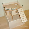In eine Buddelbox integriere ich oft ein Spielhaus sofern es die Boxgröße zulässt; dies bietet den Nagern zusätzliche Spiel- und Klettermöglichkeit. Hierzu berate ich Sie gern individuell für Ihr Gehege.