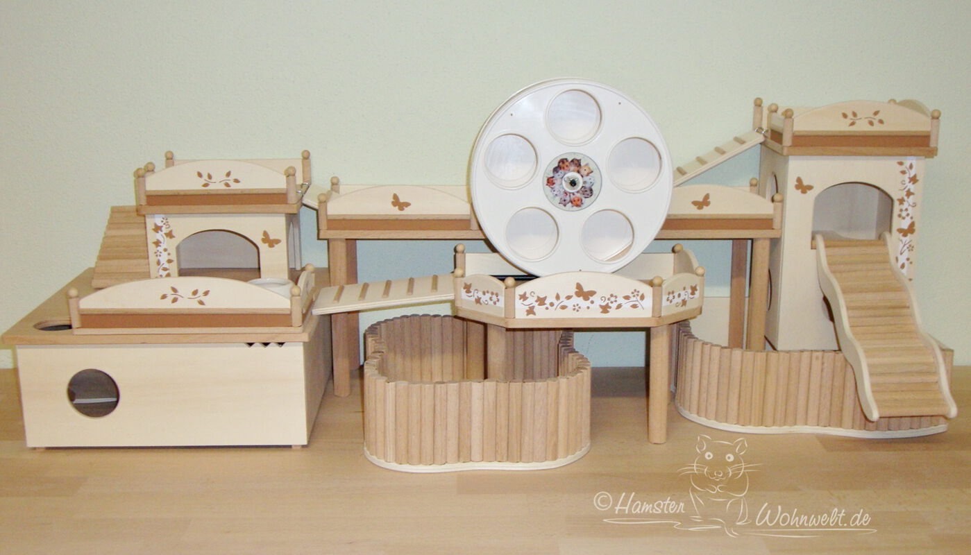 Meine Bauten sind für Gehege ab 100cm Länge einsatzfähig, bitte achten Sie auf diese Mindestgröße, wenn Sie mich kontaktieren. Ideal sind für Hamster Gehege ab 120x50cm Gehegegröße. Lassen Sie sich NICHT von den vielen Angeboten viel zu kleiner Käfige im Zoohandel täuschen - Sie selbst wohnen doch auch lieber "geräumiger", oder?