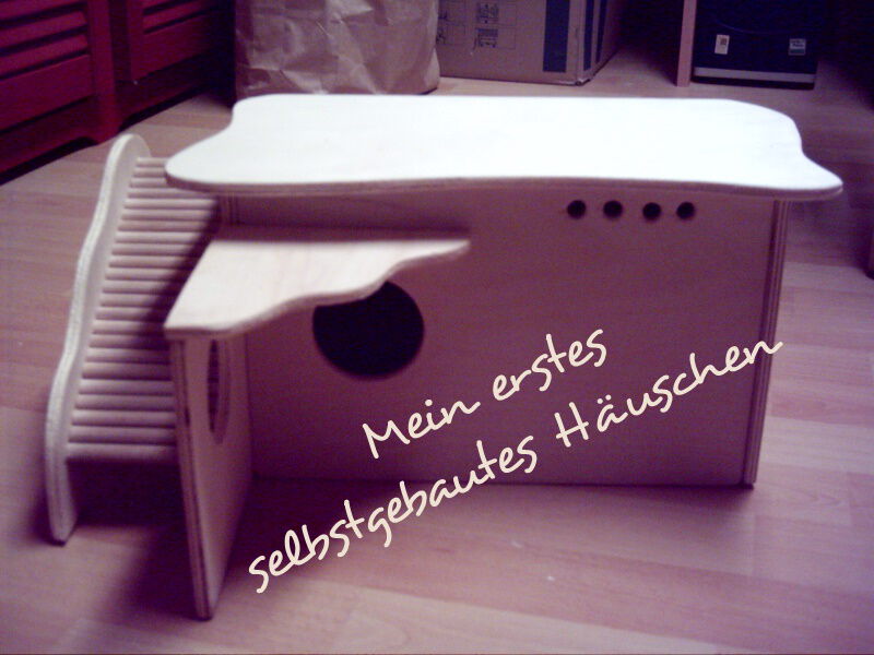 Die ersten Bauten waren noch nicht so der Hit - aber mein Jimmi liebte sie und ich war fleißig am Lernen und Üben. Er freute sich über jedes neue Mobiliar was ich ihm in seinem Auslauf präsentierte, und somit wuchs mehr und mehr meine Freude am Bau von Hamster-Einrichtungen.