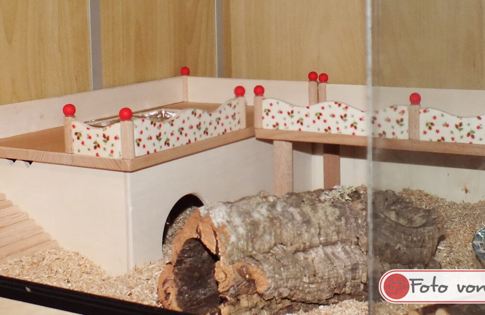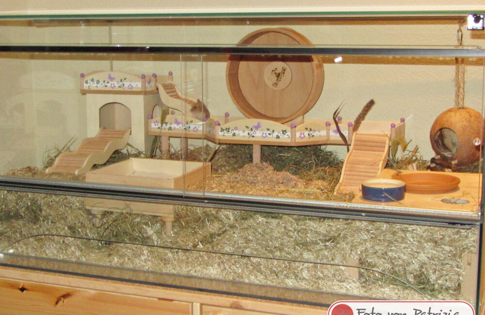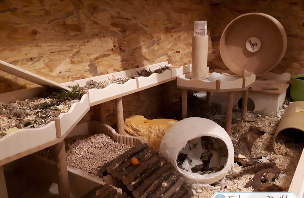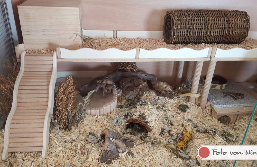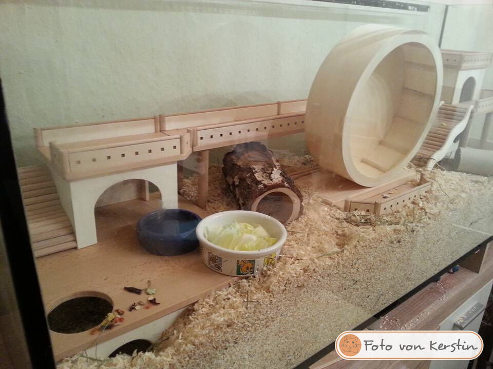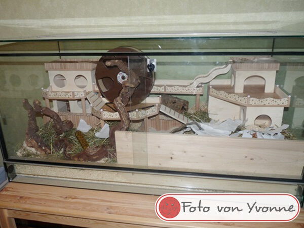Ich freue mich immer sehr, wenn mir nach dem Bauauftrag Fotos von den fertig eingerichteten Gehegen meiner Kunden zur Verfügung gestellt werden. Im Laufe der Zeit sind bereits über 600 Bilder zusammengekommen, und das macht mich sehr stolz! Schließlich ist dies der beste Lohn und Dank den ich bekommen kann, wenn ich sehe wie toll sich die Einrichtungen in den Gehegen machen und vielleicht sogar noch ein Hamsterchen auf den Bildern zu erkennen ist, der gerade durch die Einrichtung wuselt.