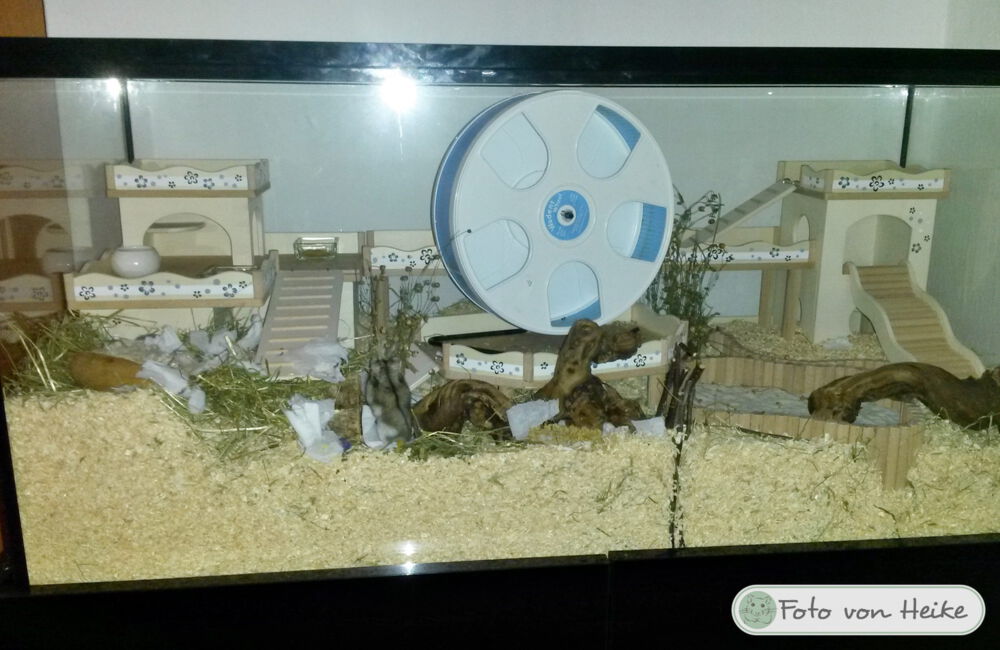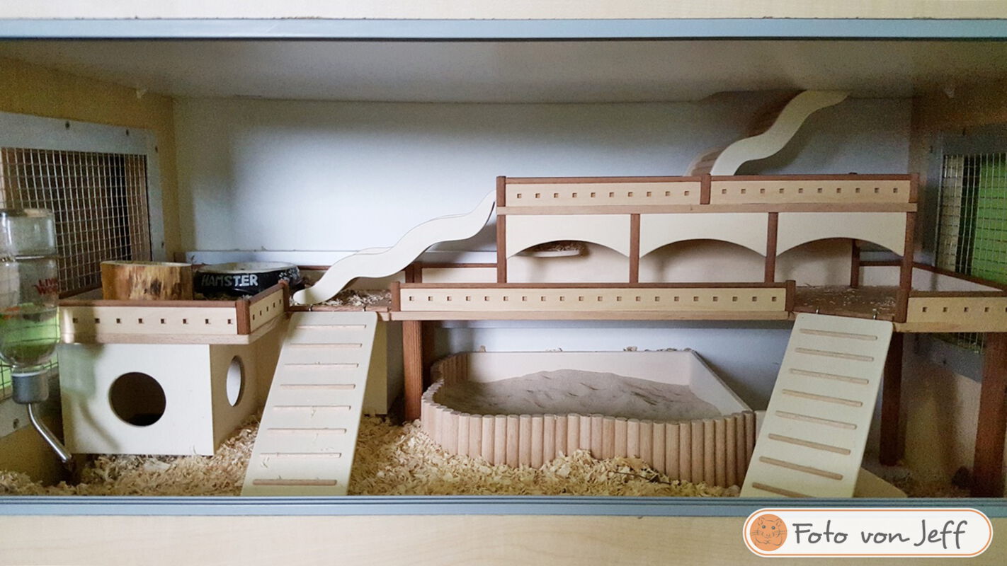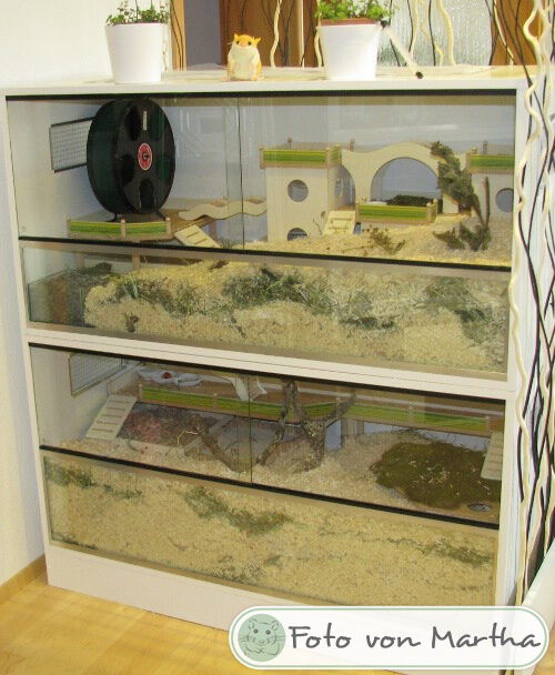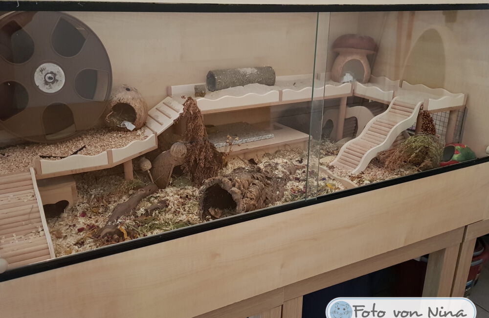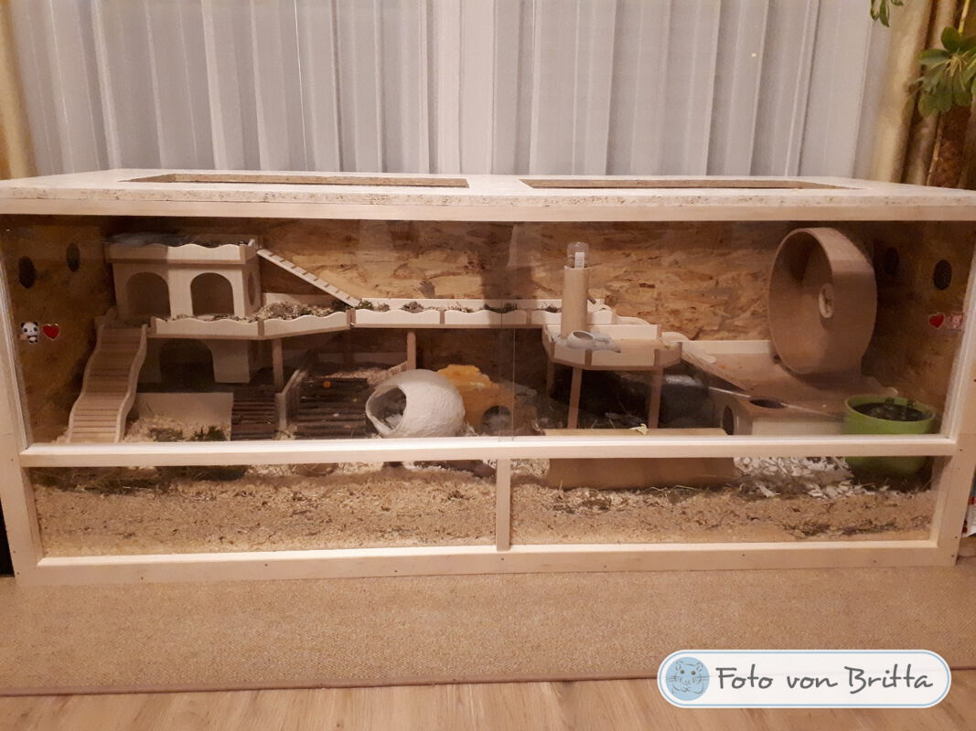 Ich freue mich immer sehr, wenn mir nach dem Bauauftrag Fotos von den fertig eingerichteten Gehegen meiner Kunden zur Verfügung gestellt werden. Im Laufe der Zeit sind bereits über 600 Bilder zusammengekommen, und das macht mich sehr stolz! Schließlich ist dies der beste Lohn und Dank den ich bekommen kann, wenn ich sehe wie toll sich die Einrichtungen in den Gehegen machen und vielleicht sogar noch ein Hamsterchen auf den Bildern zu erkennen ist, der gerade durch die Einrichtung wuselt.
