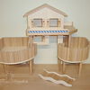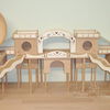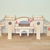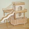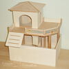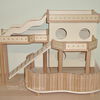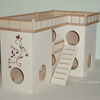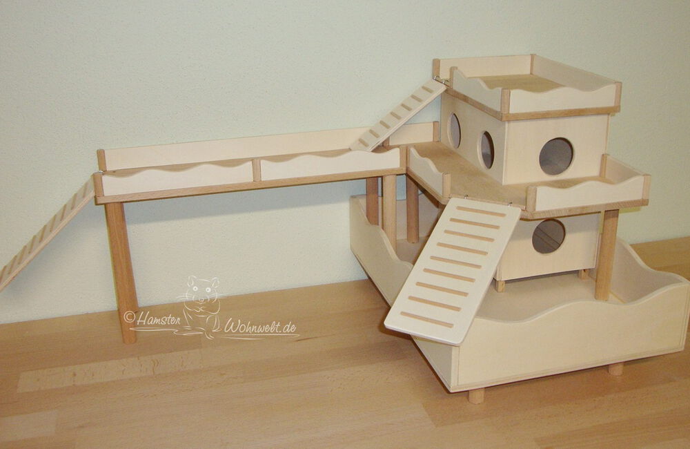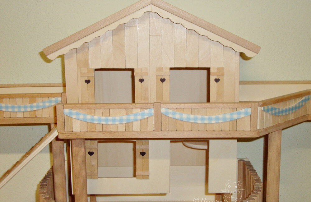 Kletterhäuser sind doppelt so breit wie die Türme und bieten somit mehr Nutzfläche für das Tier. Ebenso die Kletterfestungen: sie bestehen aus zwei Türmen - einem großen mit vier Eingangslöchern und einem kleinen Turm, die beide mithilfe einer kleinen Ebene miteinander verbunden sind.