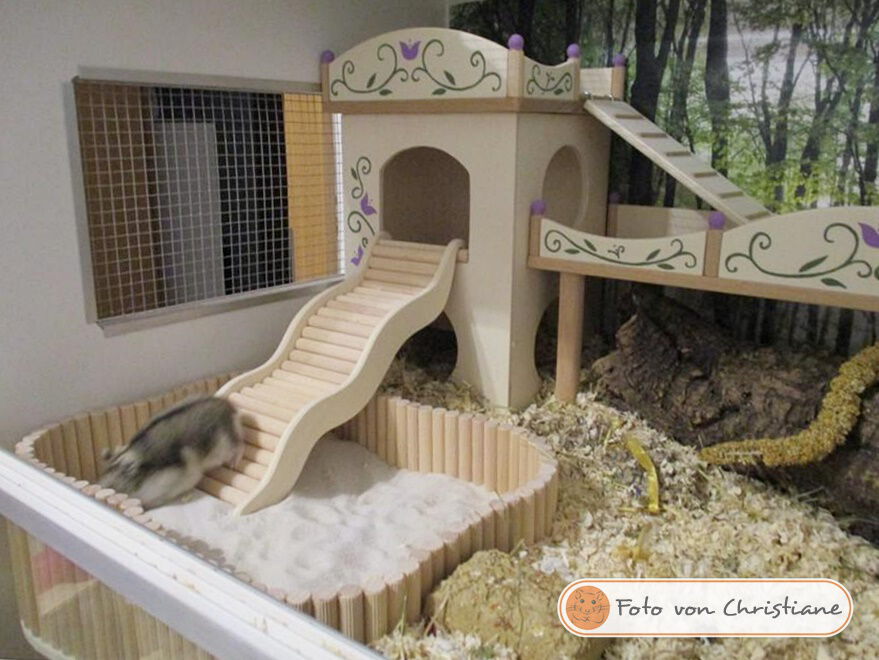 Ich freue mich immer sehr, wenn mir nach dem Bauauftrag Fotos von den fertig eingerichteten Gehegen meiner Kunden zur Verfügung gestellt werden. Hier können Sie einen Blick in einige dieser hübschen Hamsterheime werfen.
