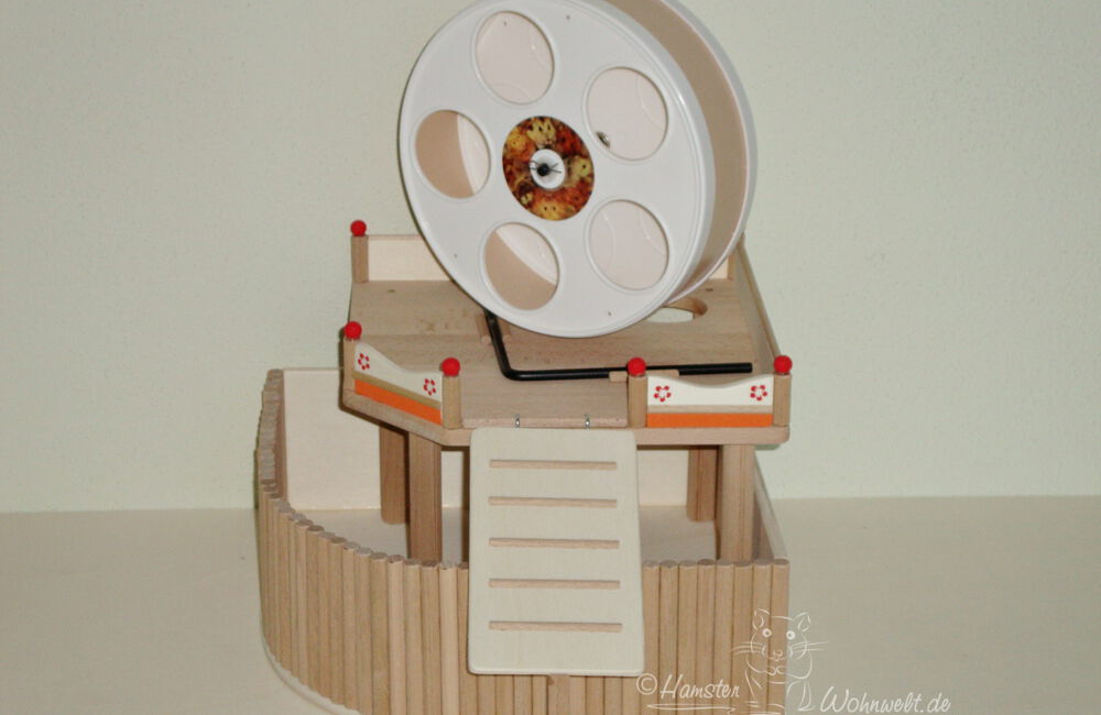 Meine Laufrad-Ebenen aus der Hamster-Wohnwelt richten sich nach der Größe des vorhandenen Laufrads plus genug Bewegungsfreiheit für das Tier beim Ein- und Ausstieg. Gerne platziere ich die Laufrad-Ebenen in Buddelboxen, so wird der Bereich unter der Ebene gut genutzt und dort zugleich ein möglicher Nestbau unterbunden.